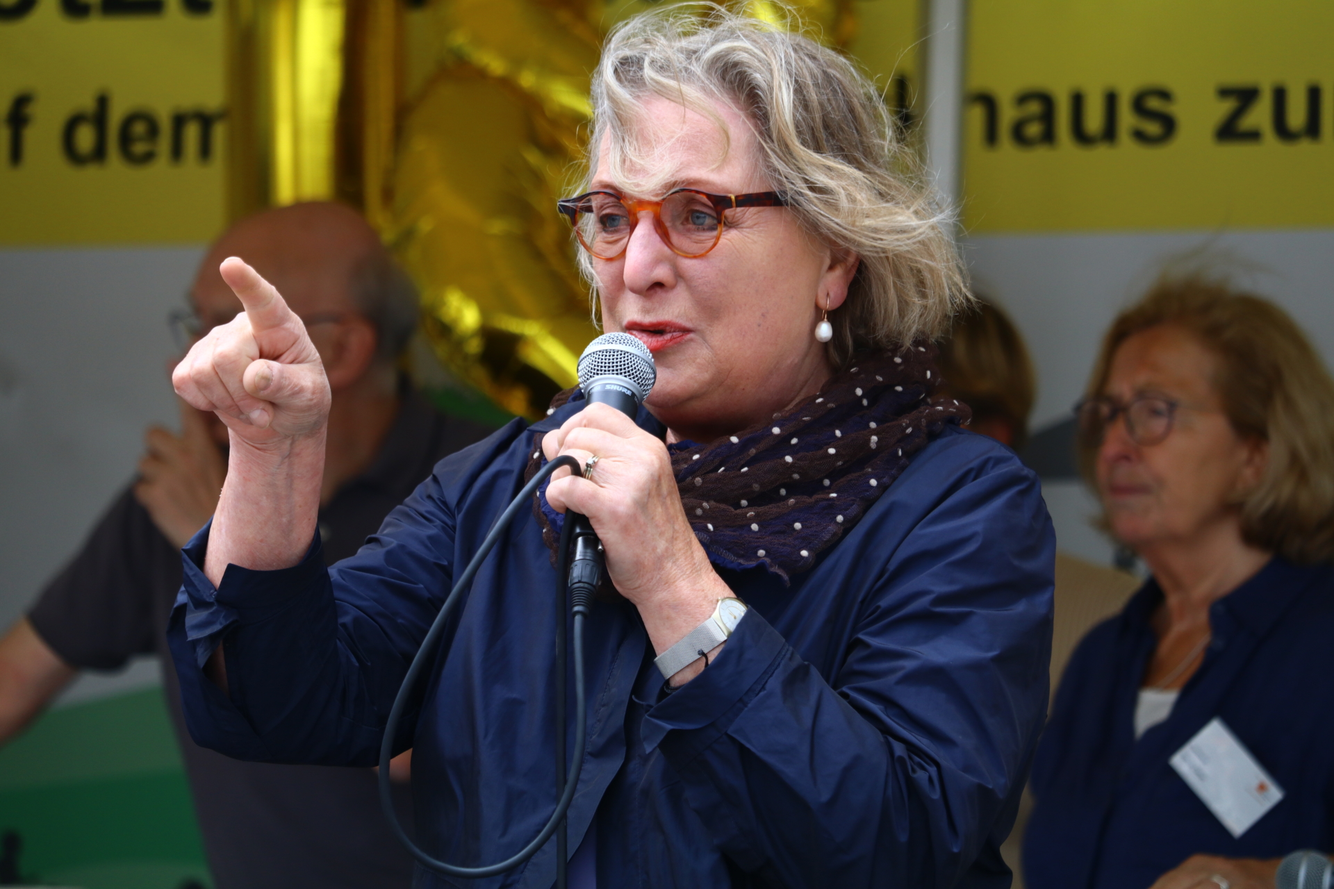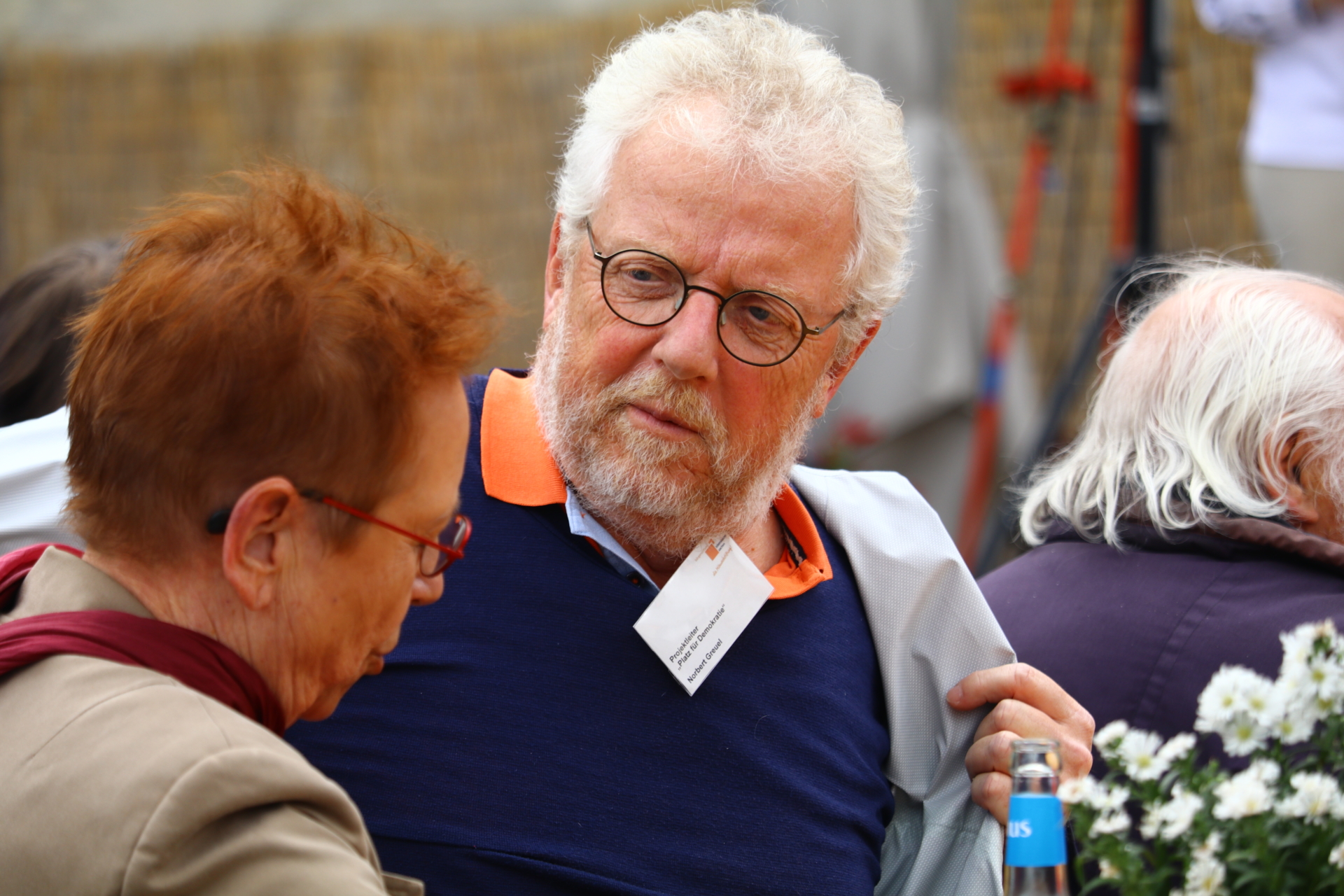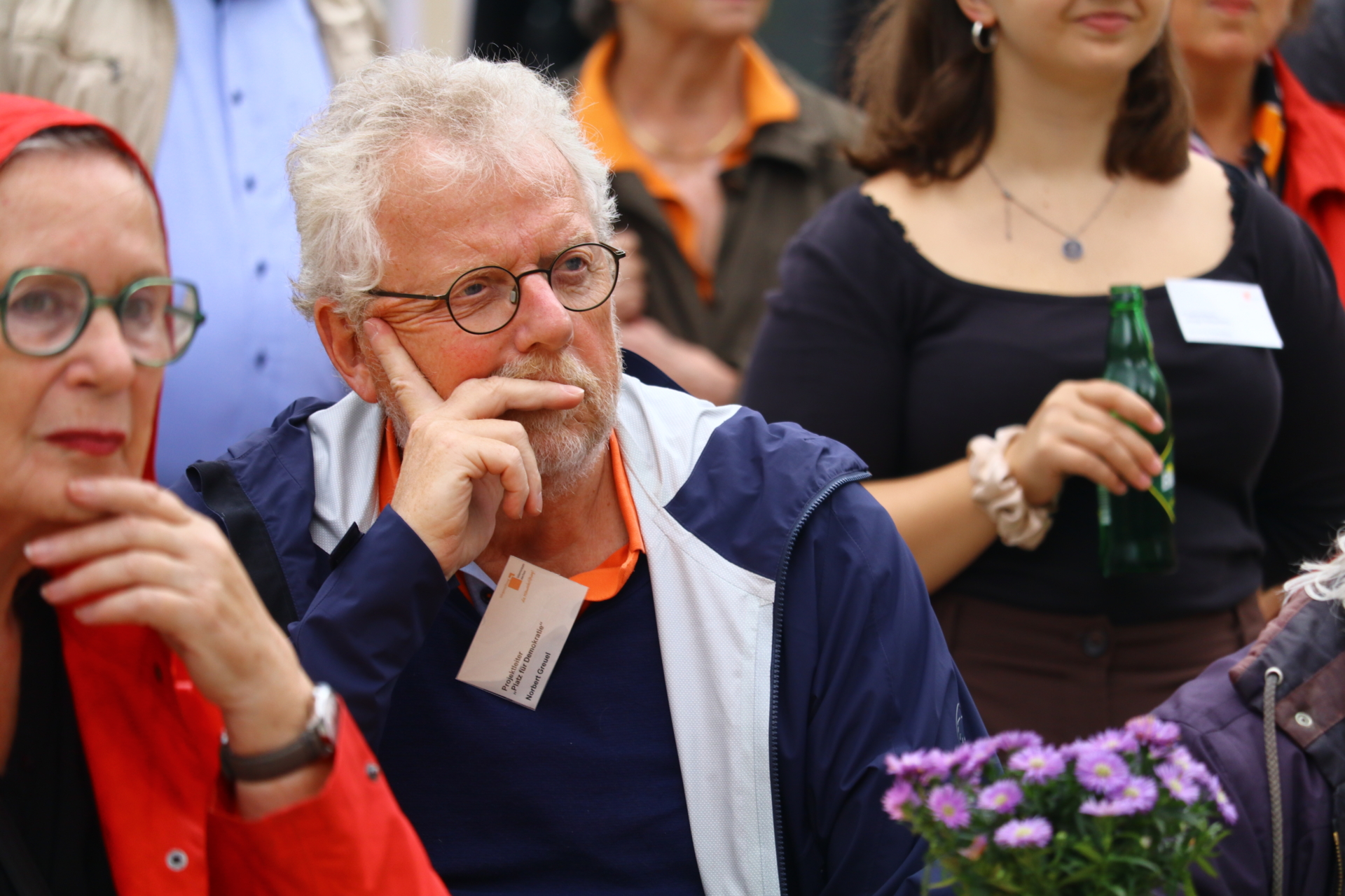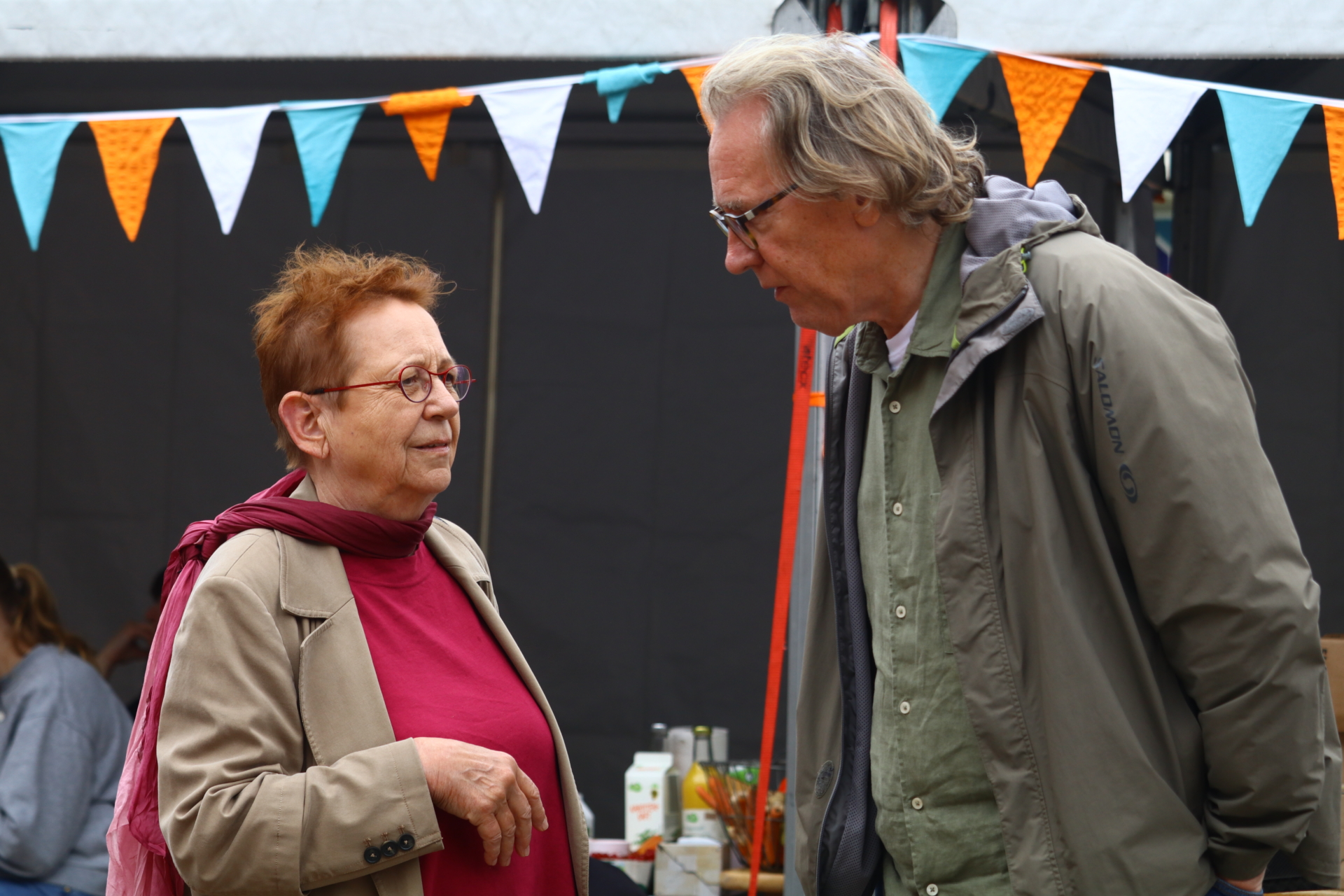 In einem kurzweiligen Podiumsgespräch kamen Ehrenamtliche und Gründungsstifter:innen der Bürgerstiftung zu Wort. Als ein Regenschauer auf den Platz niederprasselte, spannten sich viele bunte Regenschirme auf – der fröhlichen Stimmung tat dies keinen Abbruch. Ukrainische Lieder und interaktives Improvisationstheater sorgten für gute Unterhaltung.